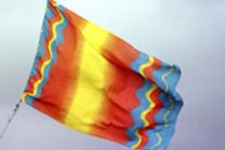 De retour à Kaw Thaung, nous avons fait faire au marché un grand drapeau dans une étoffe bigarrée. Les Moken ont pu ainsi reconnaître notre pavillon de loin, et petit à petit ils nous ont laissé approcher.