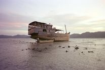 Au beau milieu d'une nuit de décembre, nous avons tous été réveillés par les cris du capitaine. Le bâteau se couchait lentement sur le flanc. Il s'échouait dans le sable avec la marée qui descendait doucement. L'aube nous a révélé la vision fantômatique de notre bâteau émergeant du sable au milieu de la jolie baie de Kubo, asséchée.